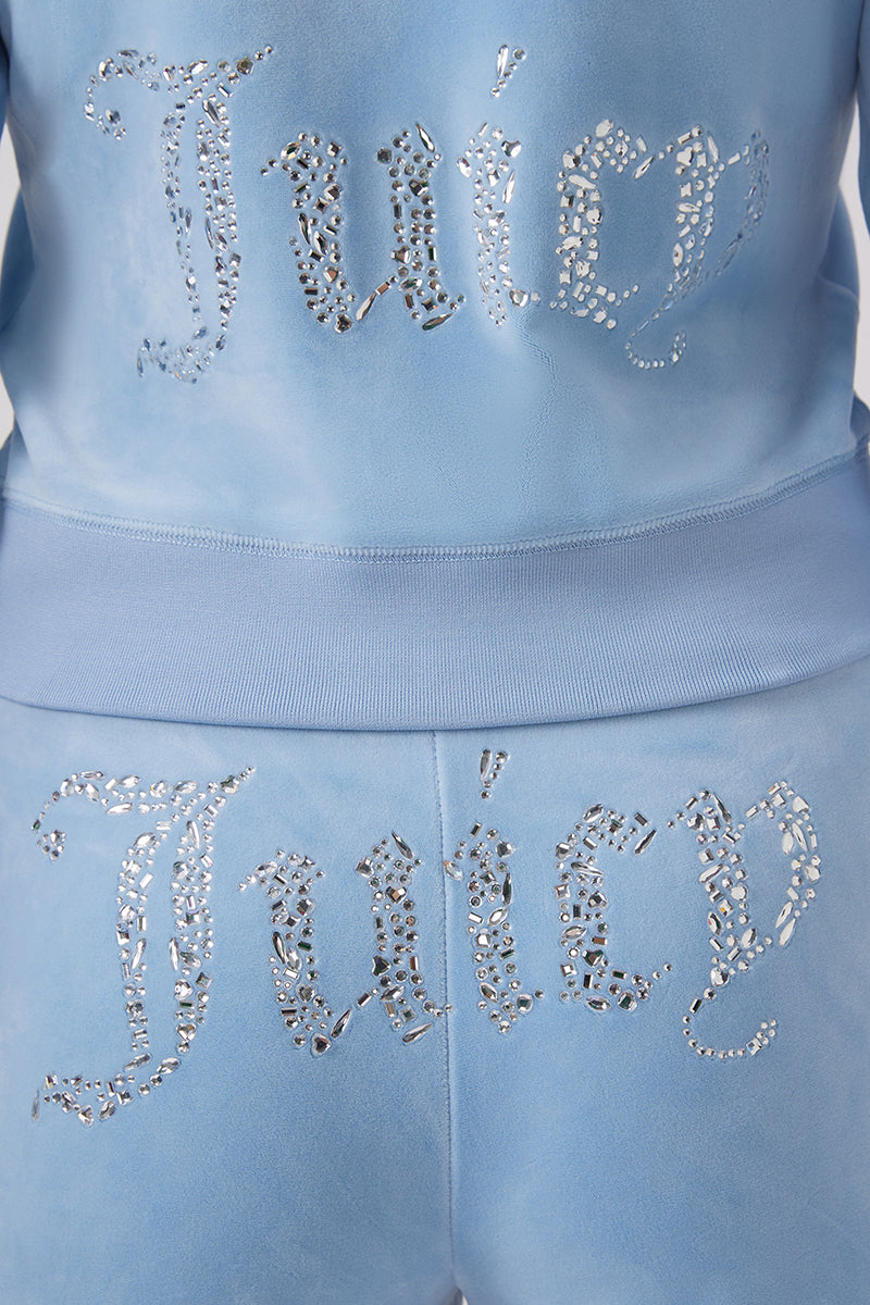 Juicy teams up with Angel Reese for a glam Y2K revival. This special-edition luxe velour hoodie brings the sparkle with a dazzling winged A in mixed crystals on the front and our iconic rhinestone logo on the back. Finished with an A zipper pull. thumbholes and side pockets to keep that OG Juicy vibe alive.
