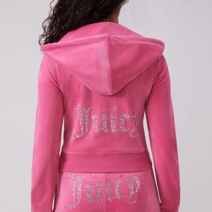 Juicy teams up with Angel Reese for a glam Y2K revival. This special-edition luxe velour hoodie brings the sparkle with a dazzling winged A in mixed crystals on the front and our iconic rhinestone logo on the back. Finished with an A zipper pull. thumbholes and side pockets to keep that OG Juicy vibe alive.