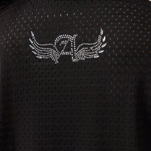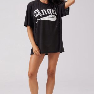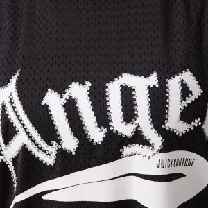 Juicy Couture x Angel Reese delivers effortless glam with this oversized mesh tee dress. Featuring a bold ANGEL graphic outlined in rhinestones and a dazzling winged A in mixed crystals on the back. Sporty. sparkly. and made to turn heads??just like Angel.