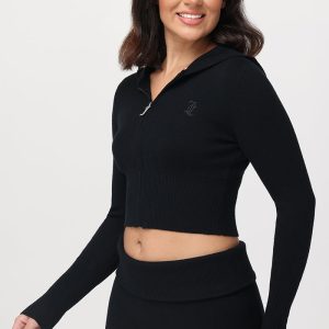 This knit cropped jacket is the epitome of stylish comfort. Embellished with our signature rhinestone logo on the back. you’ll be sure to turn heads while keeping cozy.