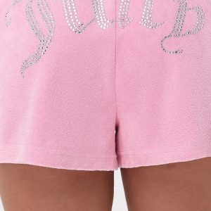 Prepare for the warmer days to come. our washed towel terry shorts will go the distance in your everyday activities. Finished with a drawstring in the waistband and our iconic rhinestone logo. Perfectly pair with its matching jacket.