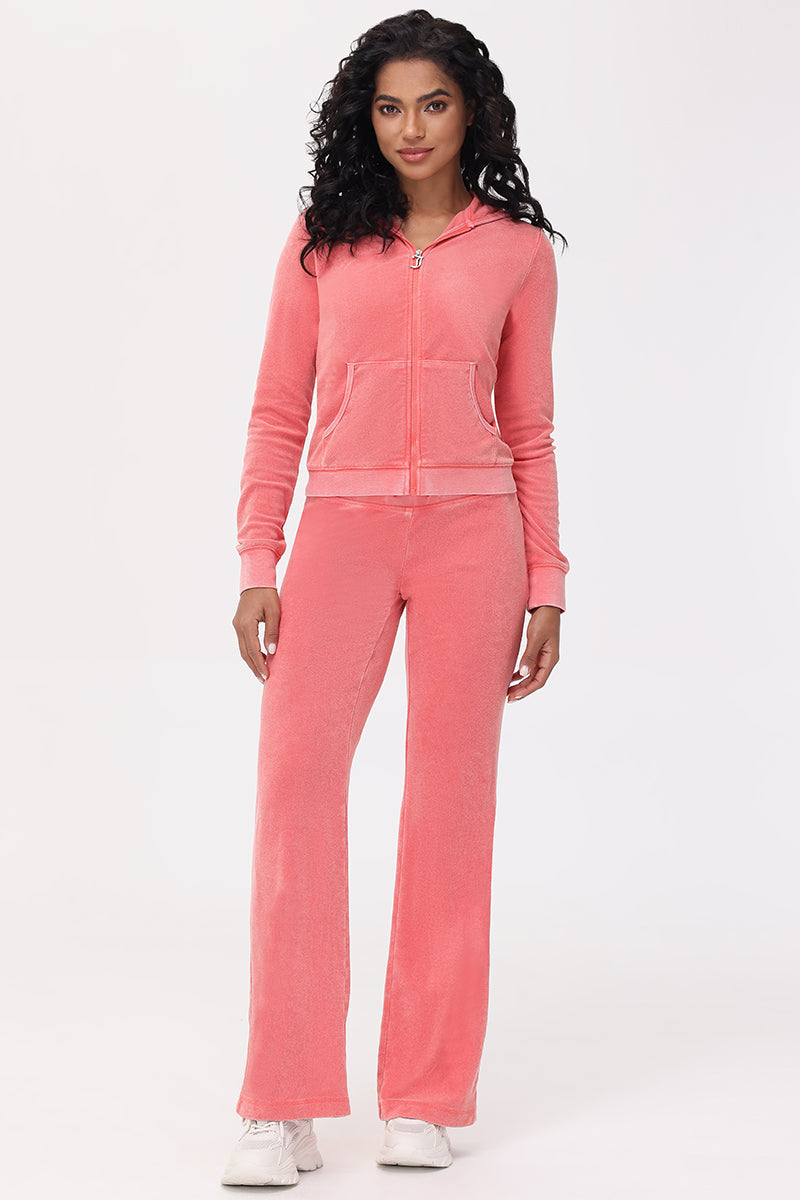 The perfect canvas. we’ve once again reinvented our essential track pant in washed towel terry. Finished with a drawstring elastic waistband and our iconic rhinestone logo. Say goodbye to pesky sand and hello to beach-chic style!