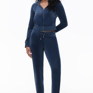 Our iconic Y2K Juicy embellishment brands the back of these velour joggers and gives them a luxe twist. Set the vibe by pairing them with your choice of jacket. tank. or rock solo.