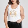 The 00’s vibes continue in a cut to show off your shoulders. and a bit more. The rhinestone JUICY logo adds a glam finishing touch.
