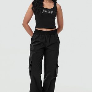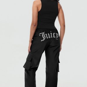 Crafted from a smooth and lightweight woven fabric with a bedazzled logo on the back. these utility-inspired pants flawlessly fuse functionality and fashion.