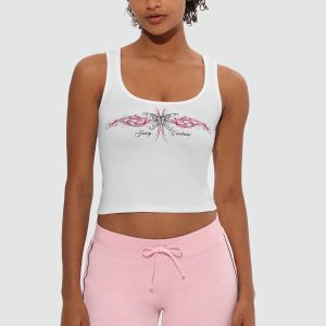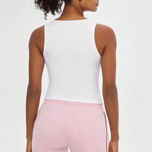 Our gorgeous U-neck tank featuring a butterfly logo. It’s the ideal layering piece to go under any Juicy tracksuit or as a stand-alone piece.
