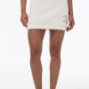 Airy crochet stitching textures this vacation-ready skirt with a colorful elastic waistband.