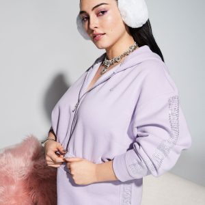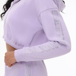 Sparkle in style with this trendy cropped fleece hoddie with the sparkling side logo rhinestones that add a touch of glam to your everyday outfit.