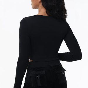 Add a touch of grunge to your wardrobe with our cropped tee. Featuring a bold graphic with our logo. this mini rib top is sure to make a statement.