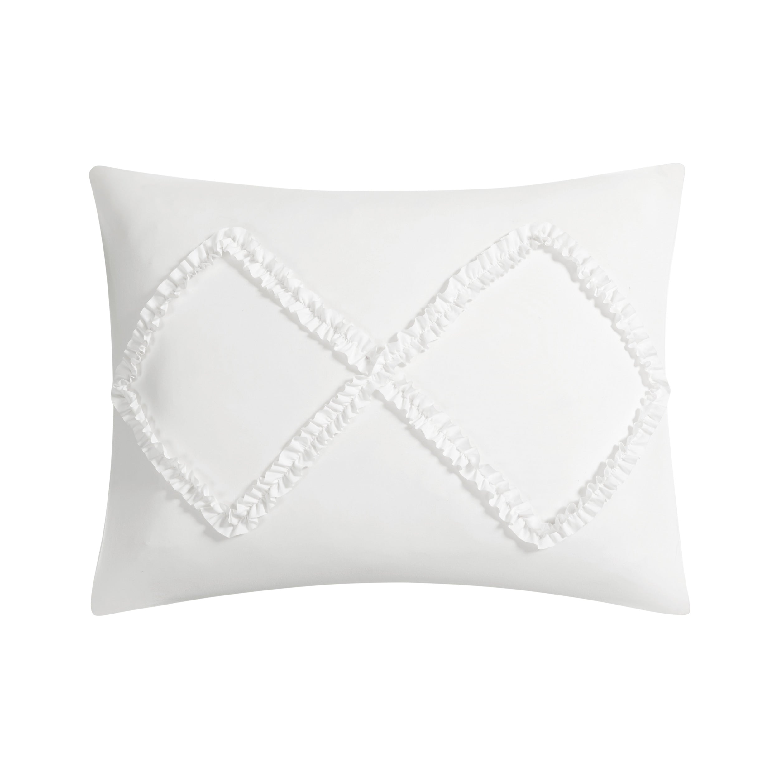 Make a statement with the Juicy Couture Diamond Ruffle reversible comforter set. Stylish ruffle detailing in a diamond pattern with a bold design. The reverse side features a sumptuously soft plush microfiber.