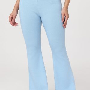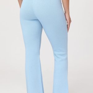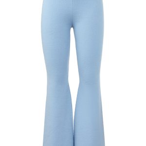 A Y2K classic with a comfy twist. These warm and endlessly wearable knit flare pants feature a low rise. fold-over waist. and a small rhinestone logo on the side of leg.