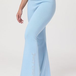 A Y2K classic with a comfy twist. These warm and endlessly wearable knit flare pants feature a low rise. fold-over waist. and a small rhinestone logo on the side of leg.