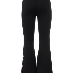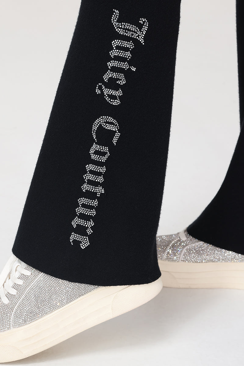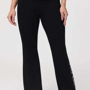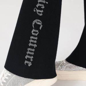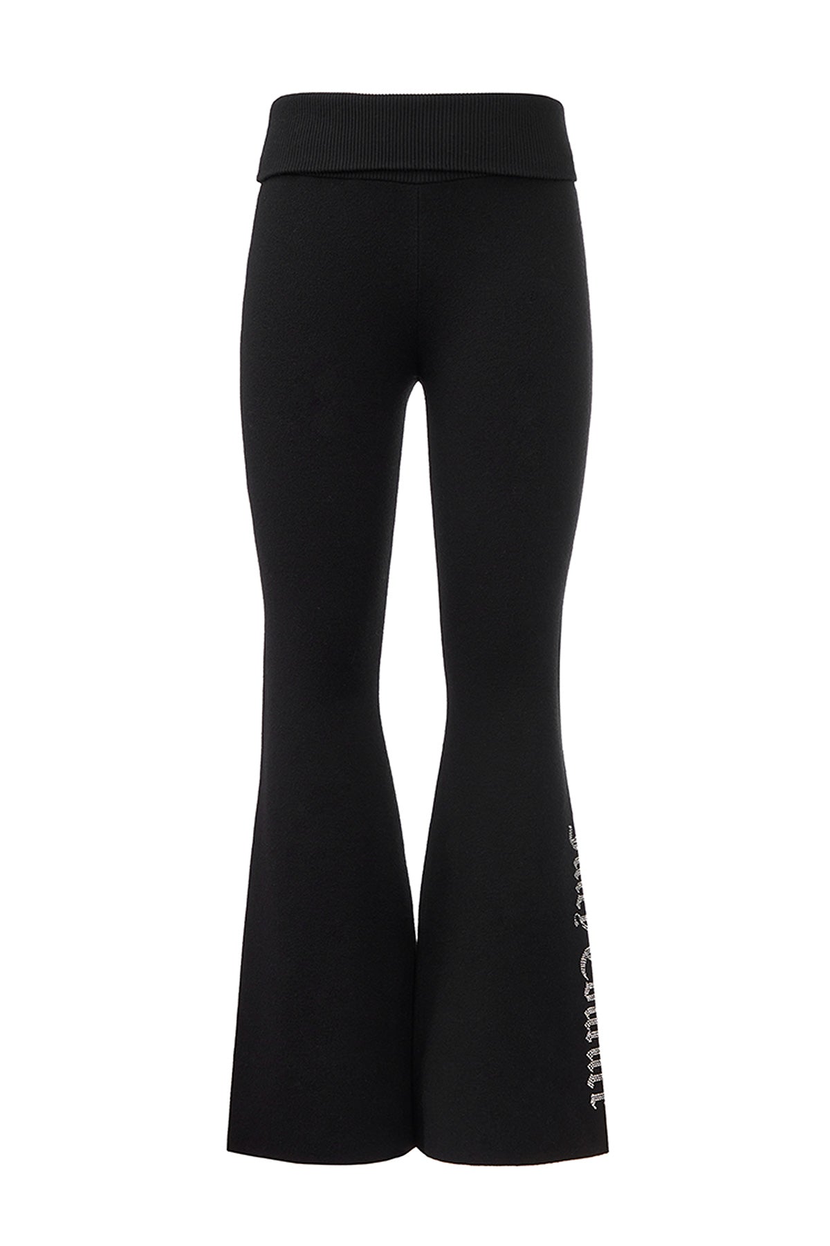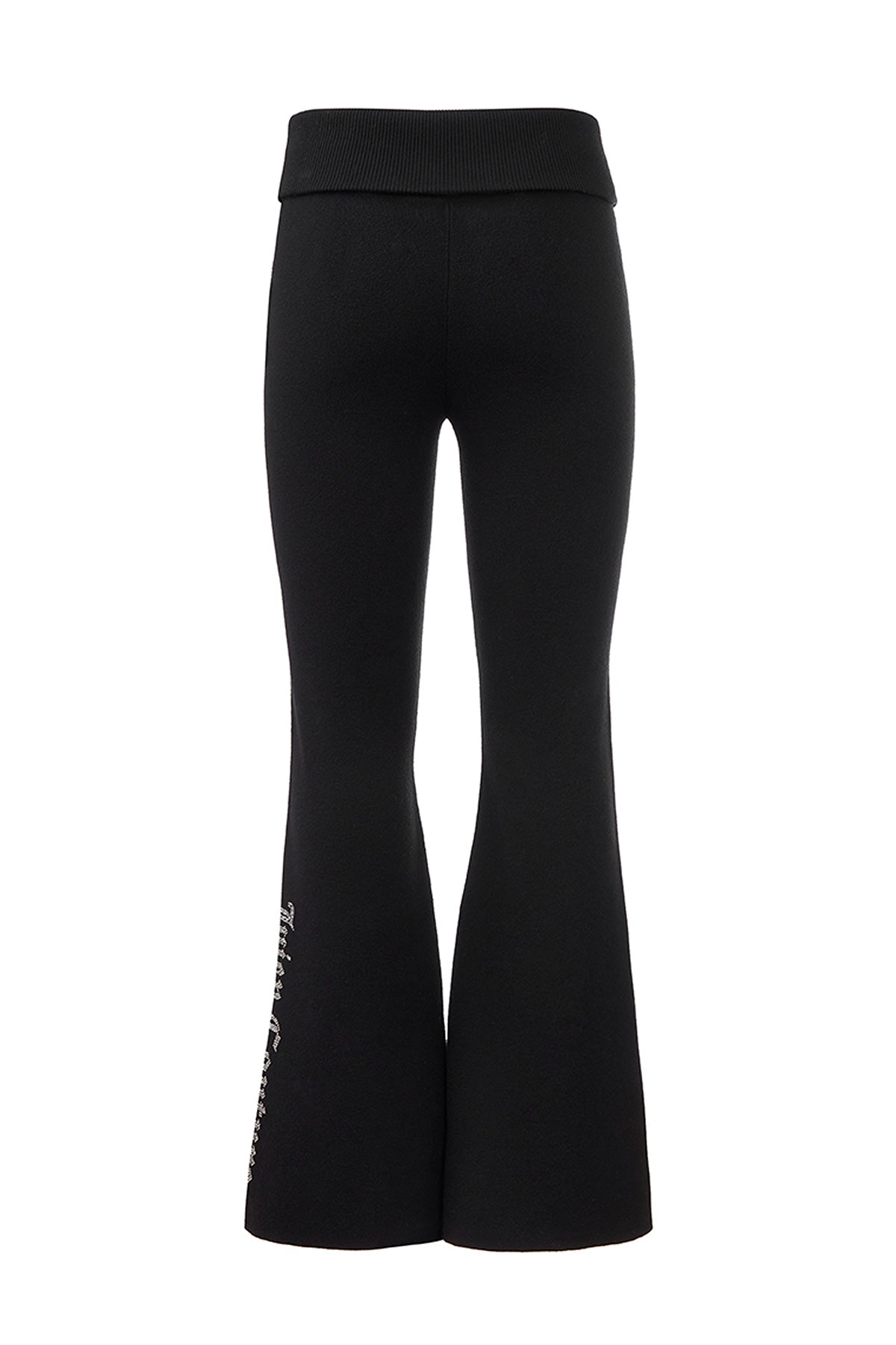 A Y2K classic with a comfy twist. These warm and endlessly wearable knit flare pants feature a low rise. fold-over waist. and a small rhinestone logo on the side of leg.