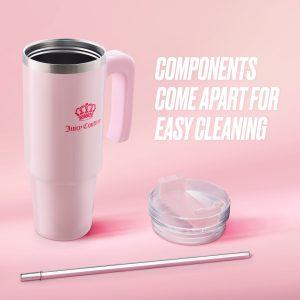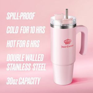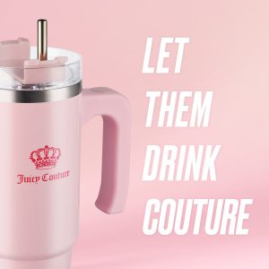 Travel and sip in style with the this Glam Logo Stainless Steel Water Bottle. With double-wall stainless steel for effortless insulation and an easy carry handle that fits in most cupholders. you’ll want to bring her everywhere. Featuring vibrant colors and the iconic Juicy logo. she makes a statement while keeping you hydrated and healthy.