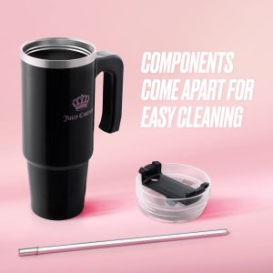 Travel and sip in style with the this Glam Logo Stainless Steel Water Bottle. With double-wall stainless steel for effortless insulation and an easy carry handle that fits in most cupholders. you’ll want to bring her everywhere. Featuring vibrant colors and the iconic Juicy logo. she makes a statement while keeping you hydrated and healthy.