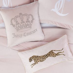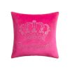 Add some subtle glam to your home with the Juicy Couture Velvet Gothic Rhinestone Crown Throw Pillow. This soft pillow features the Juicy Couture logo in gothic letters and a regal crown. both in sparkly rhinestones.