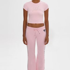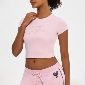 This classic baby tee is designed in a cropped silhouette with allover ribbing. Finished with a rhinestone heart and arrow in the center.