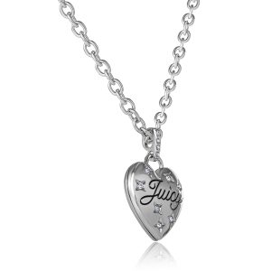 Add timeless elegance to your collection with the Juicy Couture Silver-Tone Heart Pendant Necklace. This sophisticated necklace features a beautifully polished silver-tone heart pendant. accented with sparkling crystal star details and an iconic Juicy script logo. Perfect for day-to-night styling. this chic accessory embodies modern glamour with a nod to classic Juicy Couture style.