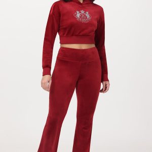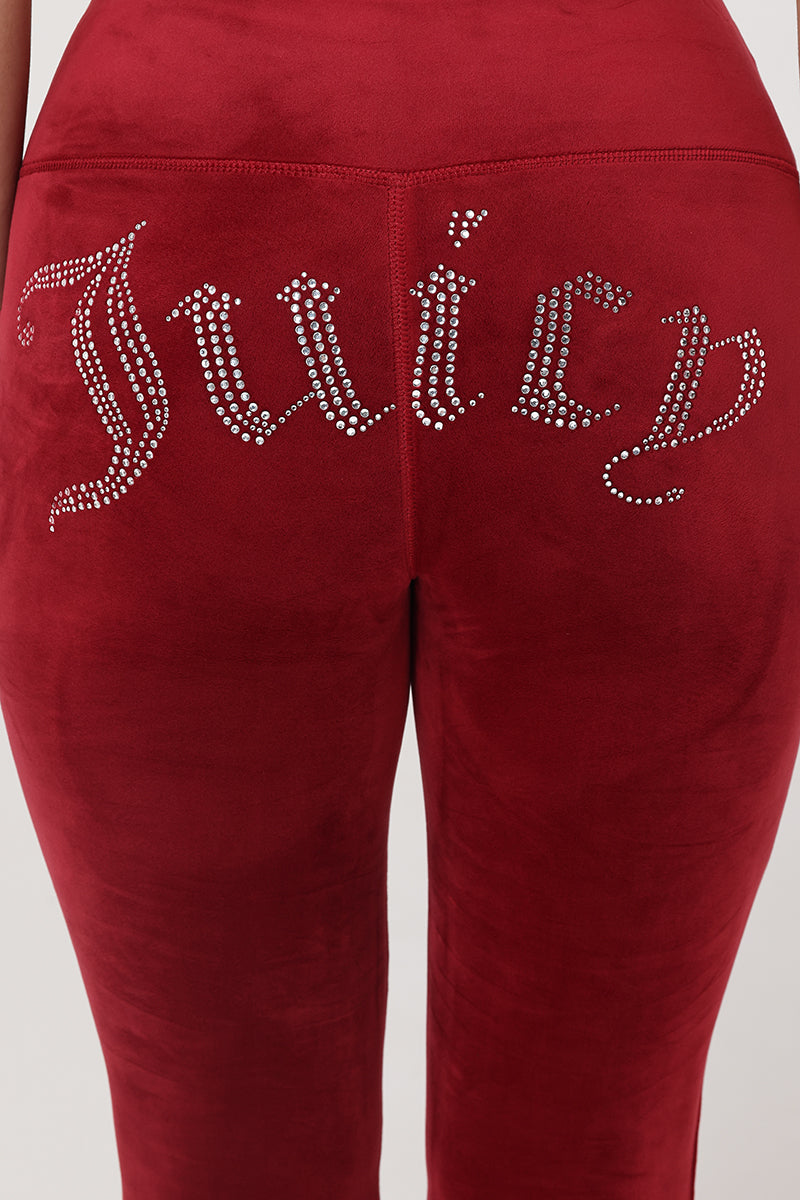 Slip into signature Juicy style with these luxe velour flare pants. featuring a dazzling rhinestone JUICY logo across the back. Soft. statement-making. and full of attitude. Pair with a matching hoodie for the ultimate throwback glam.