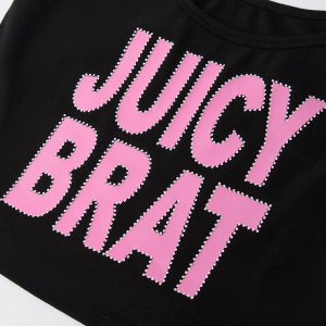 Be a Juicy Brat in this soft cotton blend tank. Featuring a bedazzled front graphic.