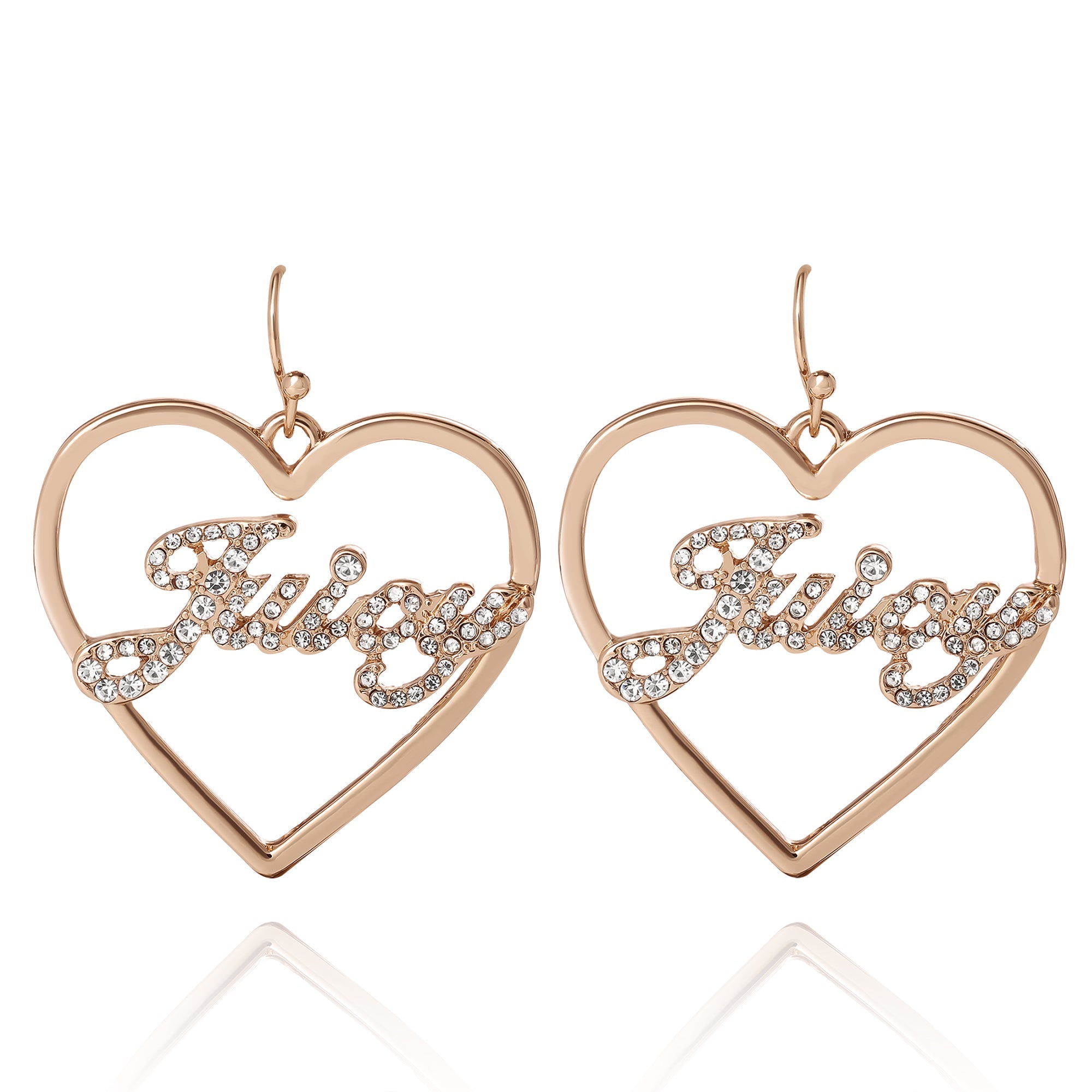 Add a touch of bold elegance to your look with the Juicy Couture Crystal Heart Drop Earrings. These stunning Goldtone earrings feature open heart designs with the iconic Juicy script. embellished with shimmering crystals. Perfect for turning heads. these earrings exude confidence. charm. and signature Juicy Couture style.