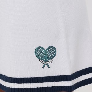Achieve effortless country-club chic with this elegant dress. Featuring a striped trim and a classic scoop neckline. it offers a flattering. body-skimming fit that highlights the waist before flowing into a mid-thigh-length A-line skirt. Perfectly tailored for a polished yet comfortable style.