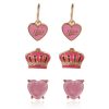 The Juicy Couture Gold-Tone Crown Heart Necklace & Earring Set is a must-have for young fashionistas who love to shine. This set includes a beautiful gold-tone chain necklace featuring a large pink heart pendant adorned with a regal gold crown. The matching stud earrings complete the look. making it the perfect accessory for any outfit. Designed for comfort and everyday wear. this lightweight set is ideal for special occasions. casual outings. or as a stylish gift for girls who adore glamorous jewelry.
