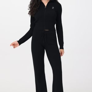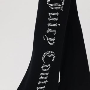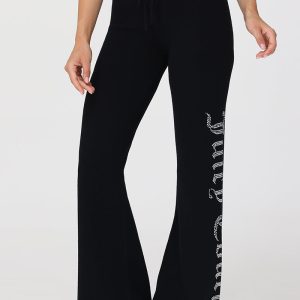 A Y2K classic with a comfy twist. These warm and endlessly wearable knit flare pants feature a bedazzled leg with our signature rhinestone logo.