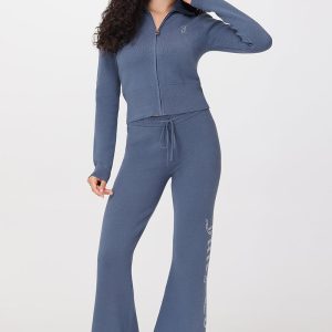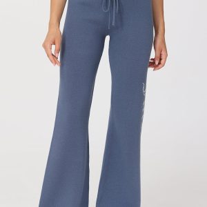 A Y2K classic with a comfy twist. These warm and endlessly wearable knit flare pants feature a bedazzled leg with our signature rhinestone logo.