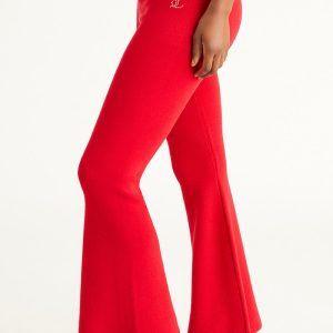 A Y2K classic with a comfy twist. These warm and endlessly wearable knit flare pants feature a low rise. fold-over waist. and a touch of Juicy bling on the hip.