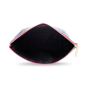 A perfect addition to pack for the beach the juicy tropical print top zip cosmetic bag will fit all of your favorite beauty products.