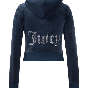 Our signature Y2K bedazzled hoodie steps above the rest with its iconic gothic J pull zipper. side pockets. and thumbholes.