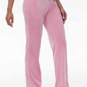 Our iconic Y2K Juicy embellishment brands the back of these velour pants and gives them a luxe twist. Set the vibe by pairing with your choice of jacket. tank. or statement tee.