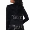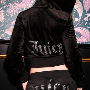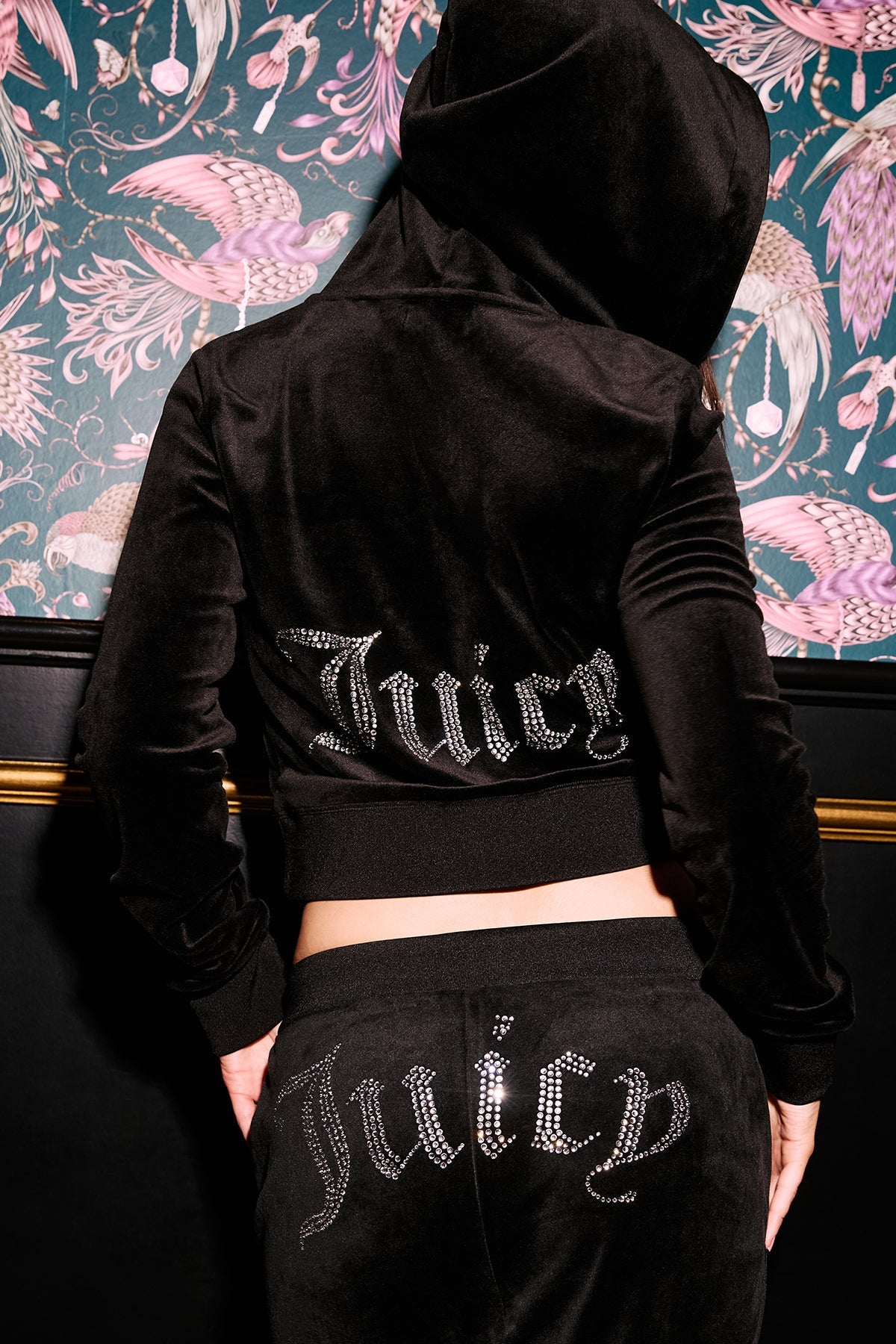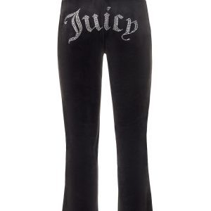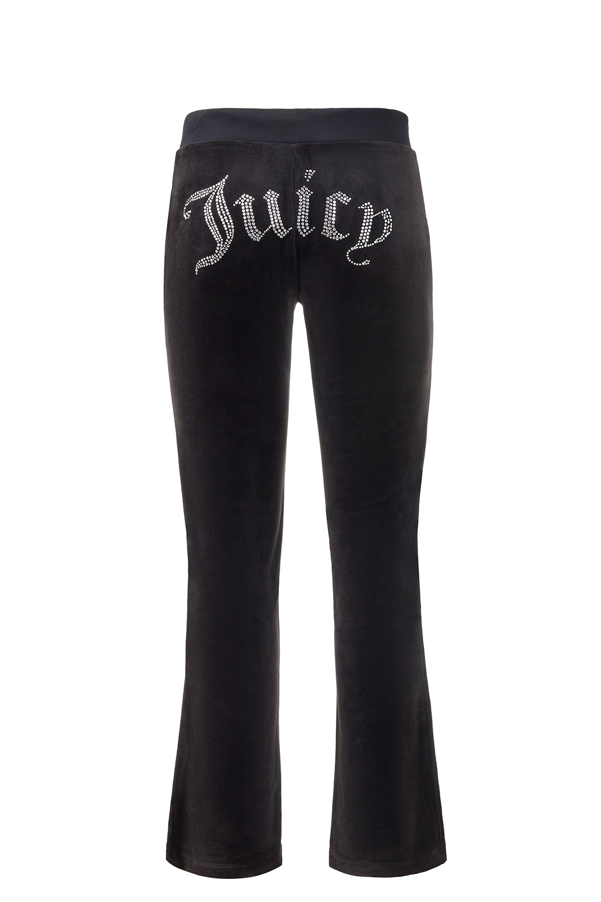 Our iconic Y2K Juicy embellishment brands the back of these velour pants and gives them a luxe twist. Set the vibe by pairing with your choice of jacket. tank. or statement tee.