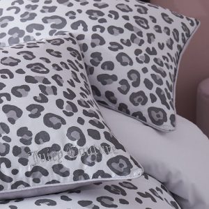 Bring the freshness of Juicy Couture into your home with the Pearl Leopard Comforter Set. Featuring a fading leopard print in a variety of grey tones on crisp cotton. this 3-piece set is a subtle way to add a breath of fresh air into your bedroom. Add the included leopard print shams with the Juicy Couture logo embroidered in silver metallic thread to finish off the look.