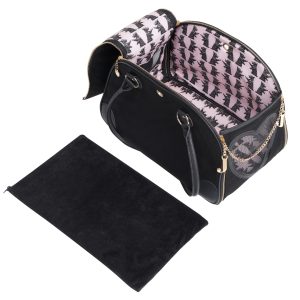 For pet owners who value style and functionality. this pet carrier is the perfect choice. Safely and comfortably take your pet on the go no matter where you’re off to. With beautifully detailed gold charms and hardware. add a touch of luxury as you jet set with your pet.