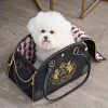 For pet owners who value style and functionality. this pet carrier is the perfect choice. Safely and comfortably take your pet on the go no matter where you’re off to. With beautifully detailed gold charms and hardware. add a touch of luxury as you jet set with your pet.