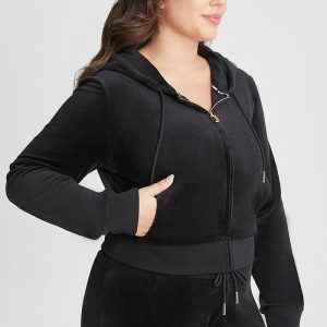 Celebrate 30 years of iconic glam with our Juicy Couture Birthday Hoodie ?a throwback to Y2K magic with a modern sparkle. This luxe velour hoodie shines bright with ombré rhinestones glistening along the hood and a bedazzled J zip pull that’s pure Juicy nostalgia.