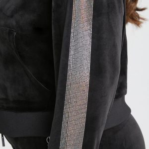 Go big on birthday glam with the Juicy Couture 30th Birthday Oversized Zip Hoodie. This cozy statement piece features ombré iridescent rhinestones cascading down the sleeve and our iconic Scottie dog logo embroidered on the back. Bold. bedazzled. and irresistibly Juicy ?it’s a celebration in hoodie form.