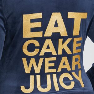 This luxe velour staple gets a festive twist with a glittery Eat Cake Wear Juicy graphic on the back and our signature bedazzled J zipper for extra shine. It’s playful. polished. and made for the life of the party ?aka you.