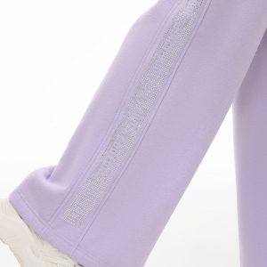Feel the comfort of these cozy fleece pants designed with a drawstring waist. wide legs and side logo rhinestones.