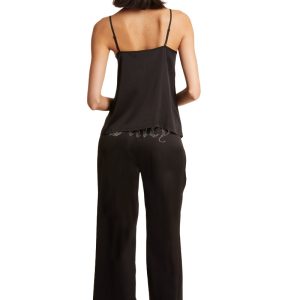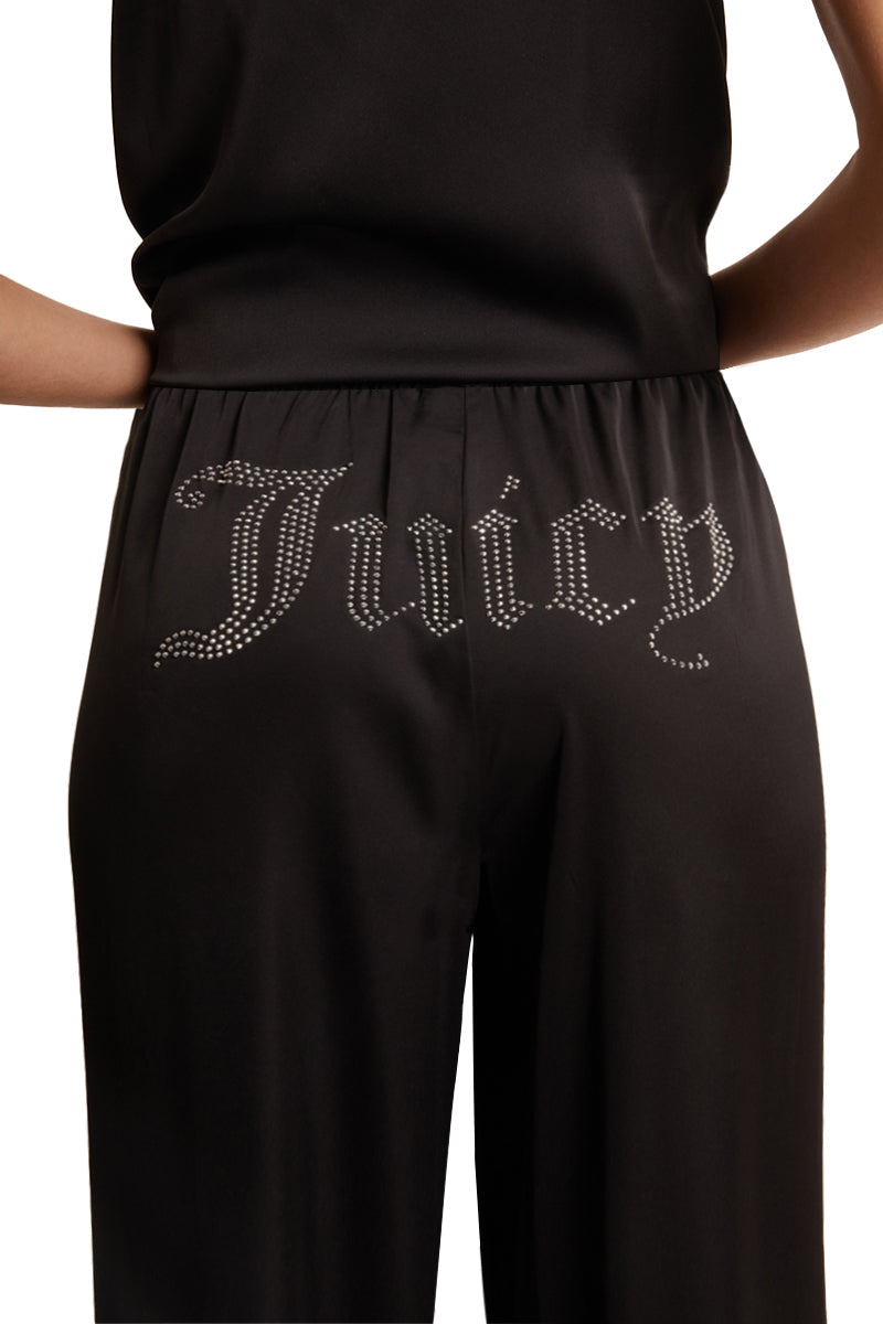 This is what dreams are made of. This glam satin pajama set is the perfect final step to your nighttime self-care routine. and features rhinestone logos for added drama.