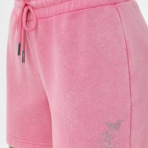 Lounge in superior comfort with this relaxed-fit shorts featuring an rhinestone logo in a washed dye fleece.
