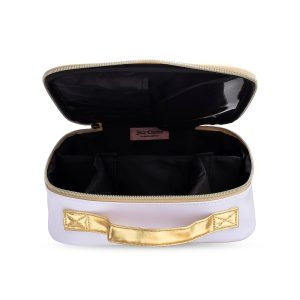 Stripe right & organize all of your beauty products and brushes with this colorful striped Juicy cosmetic bag.Â