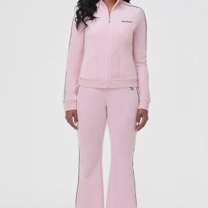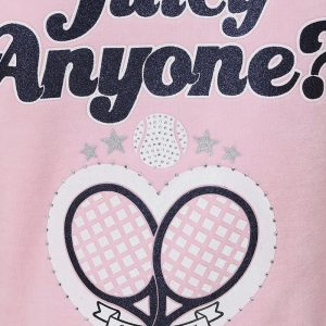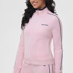 Juicy Anyone Our iconic tennis capsule features a mockneck cotton velour track jacket. Finished with a glittery graphic on the back.