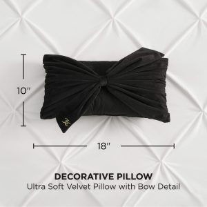 Add a hint of feminine glamour to any bedroom. living room. or home office with this decorative pillow. Featuring a quilted texture and sophisticated velvet bow. she adds personality to any space.