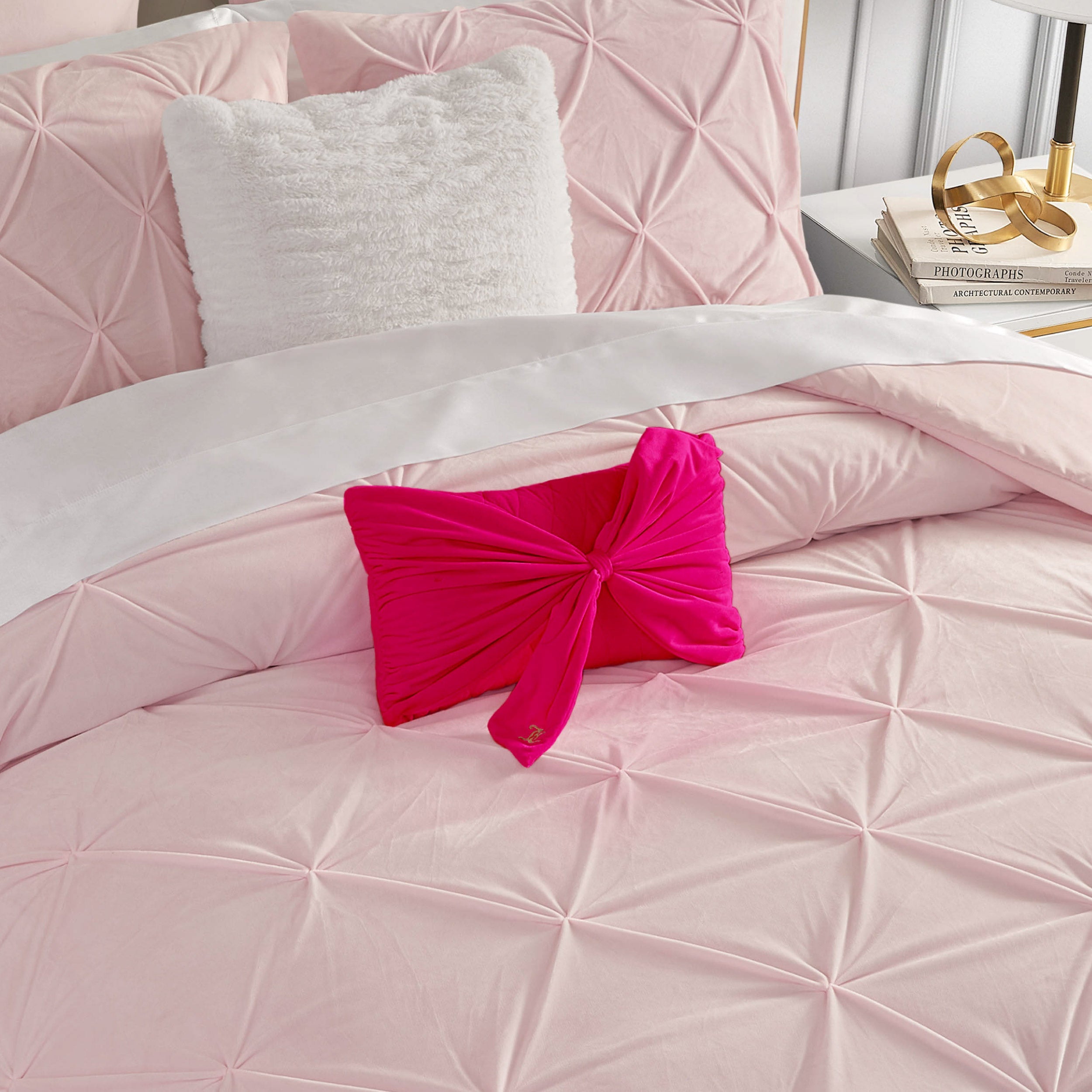 Add a hint of feminine glamour to any bedroom. living room. or home office with this decorative pillow. Featuring a quilted texture and sophisticated velvet bow. she adds personality to any space.