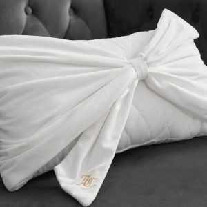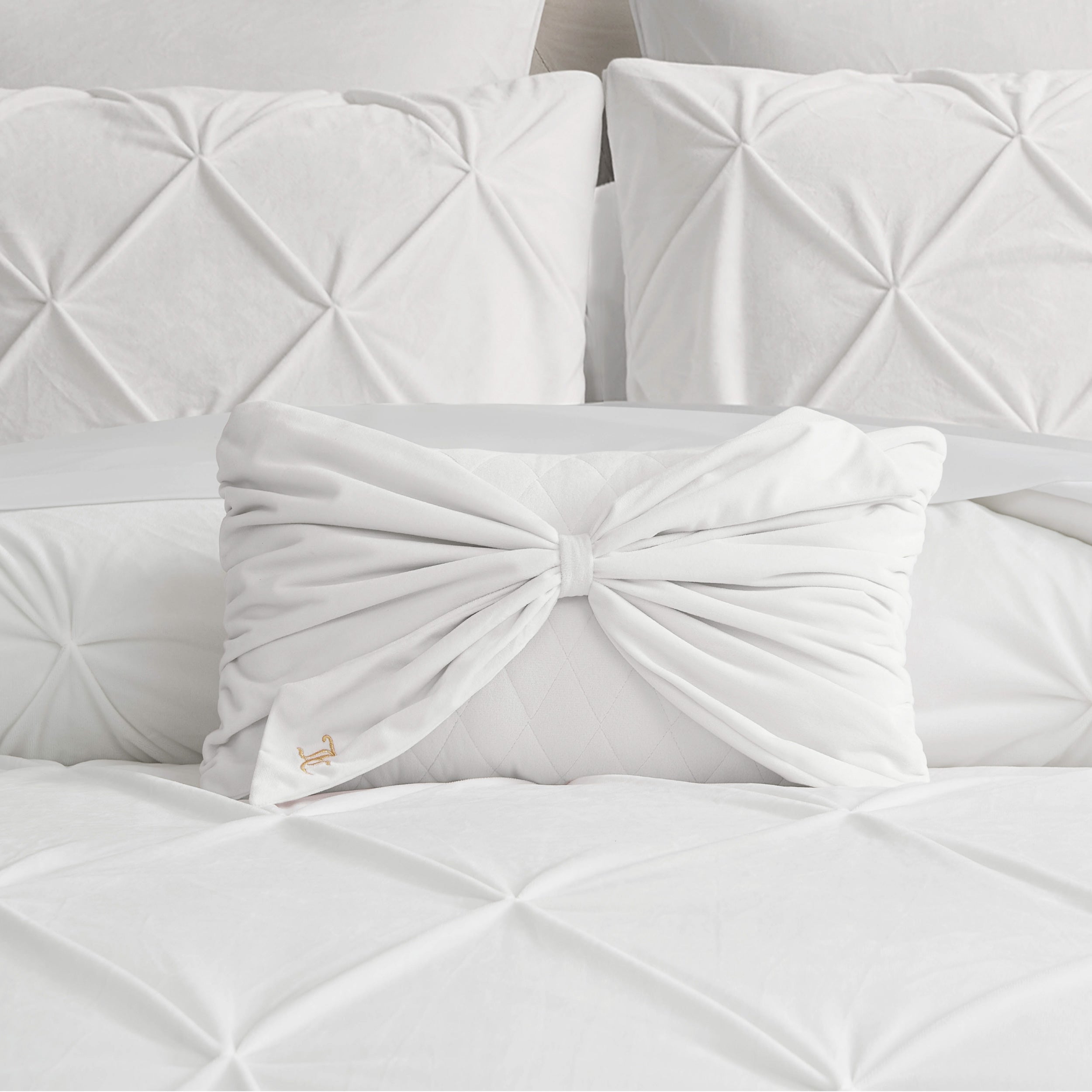 Add a hint of feminine glamour to any bedroom. living room. or home office with this decorative pillow. Featuring a quilted texture and sophisticated velvet bow. she adds personality to any space.