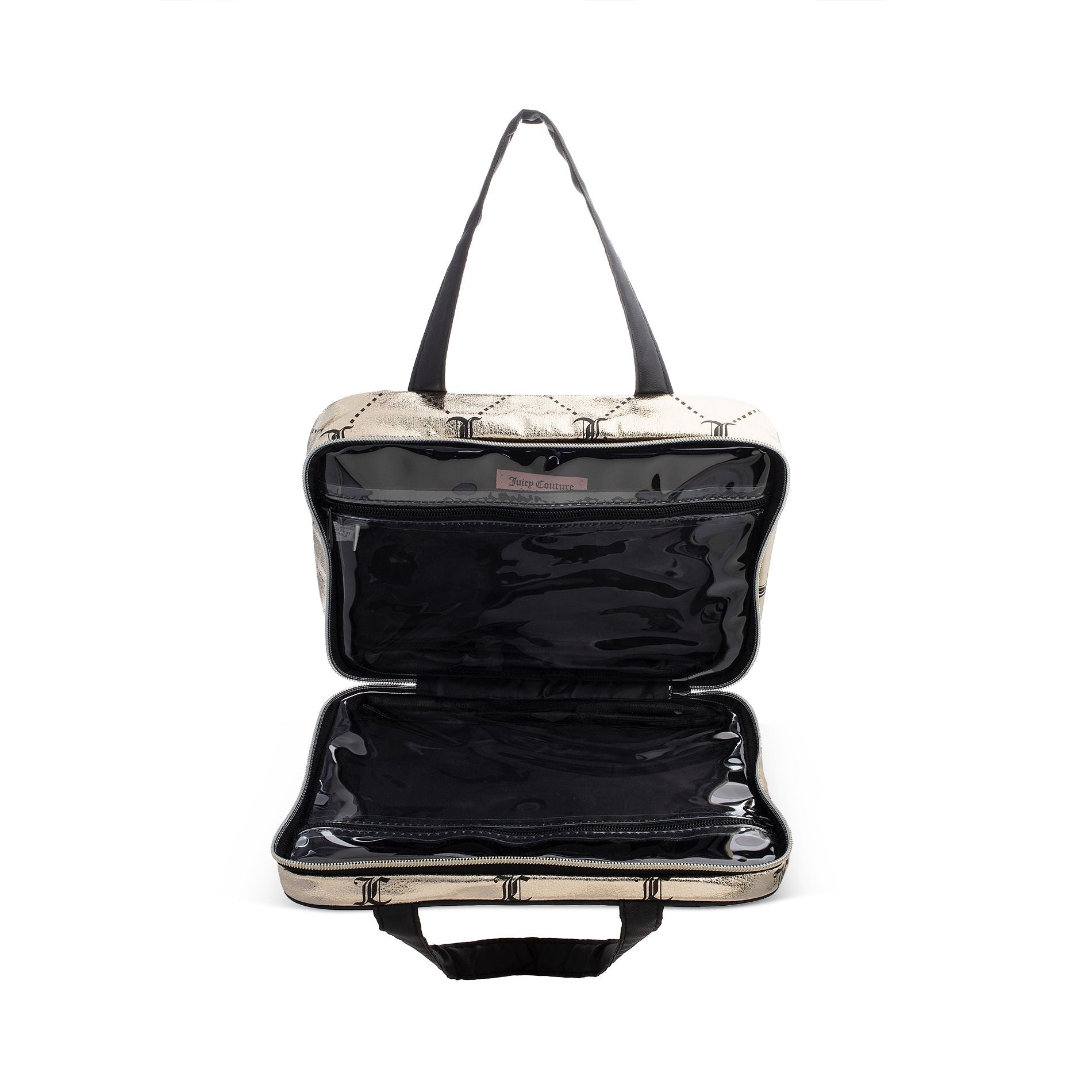 Headed out of town Bring this metallic gold juicy logo print weekender. The perfect travel companion.