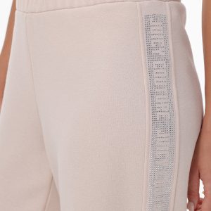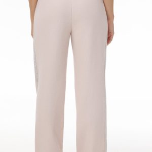 Feel the comfort of these cozy fleece pants designed with a drawstring waist. wide legs and side logo rhinestones.
